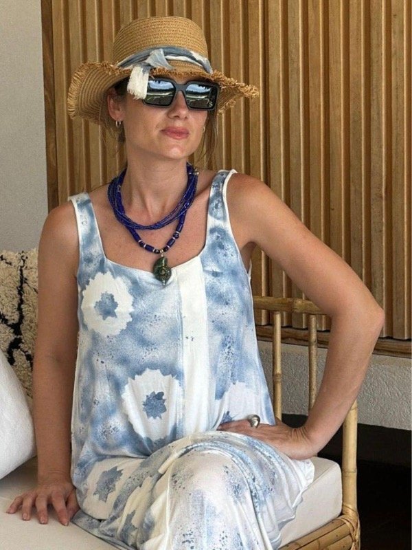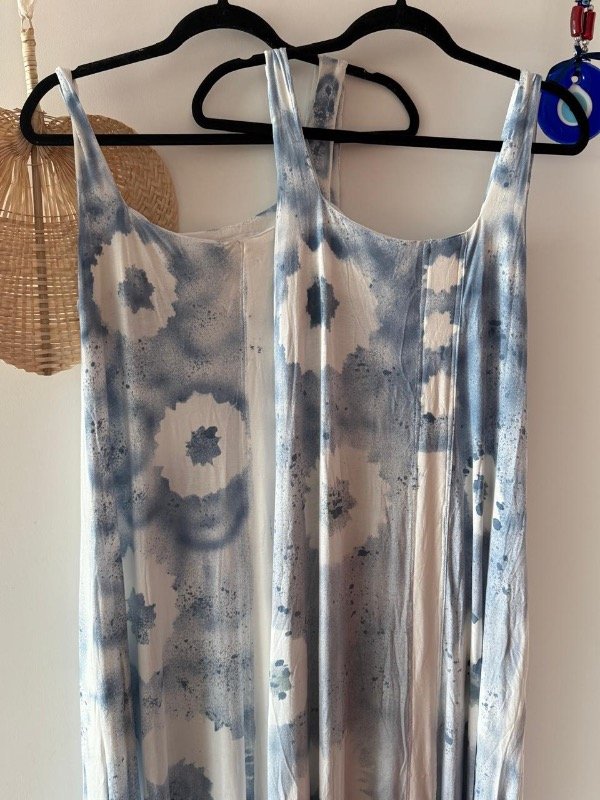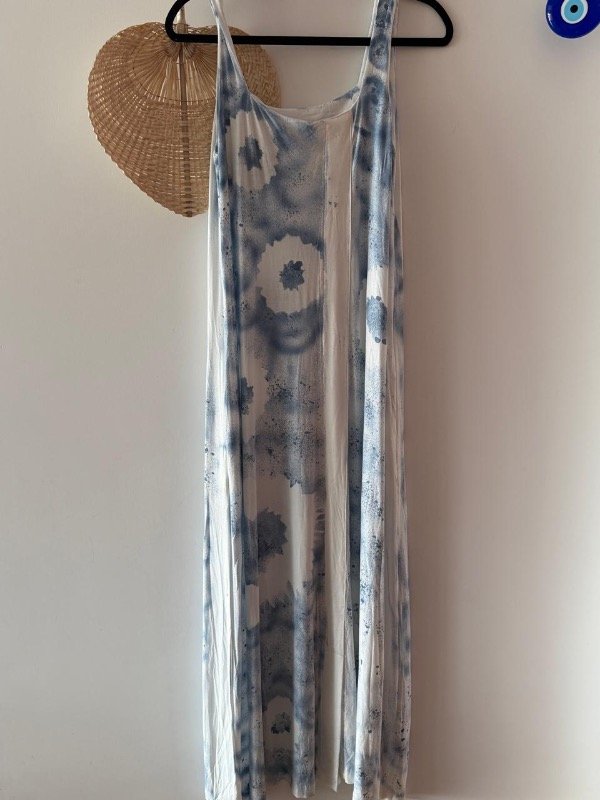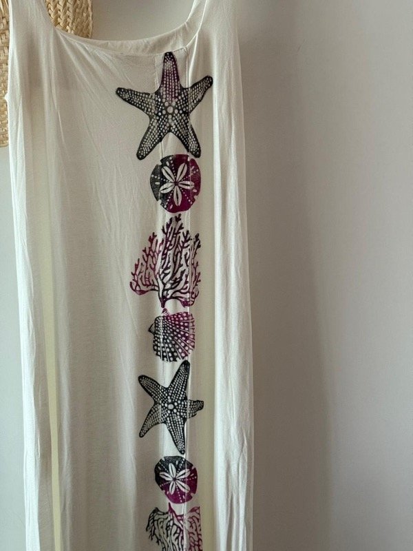 Vestido de algodón detalle de estampas con sellos.