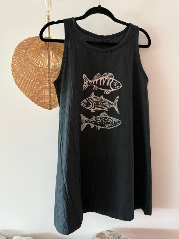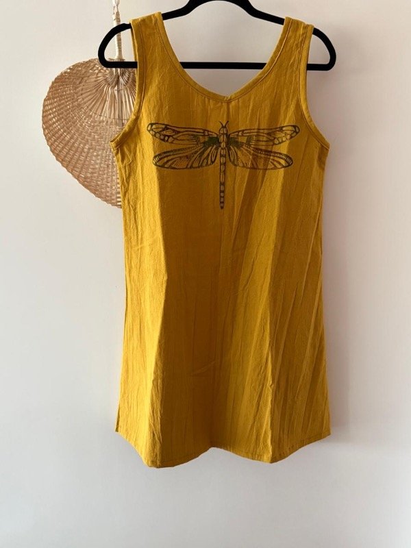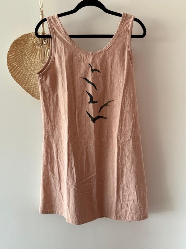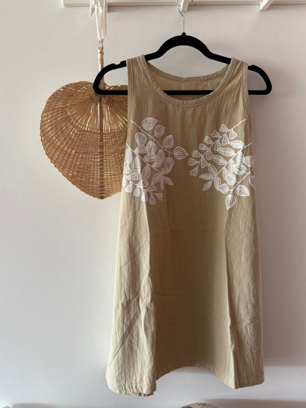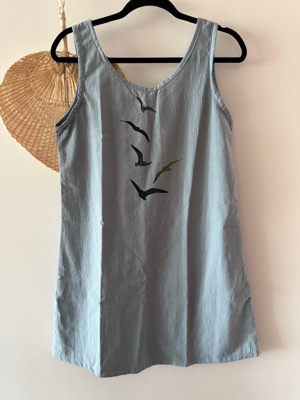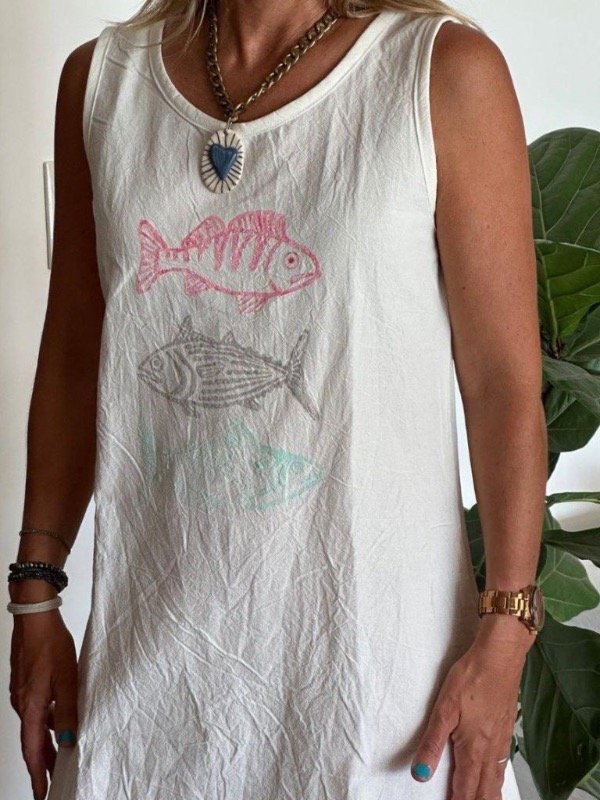 Vestido York de Lienzo Teñido con estampas en pecho.