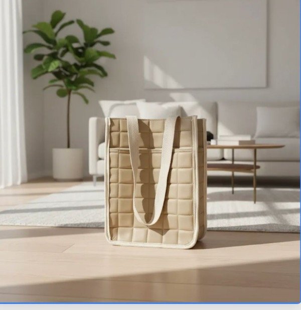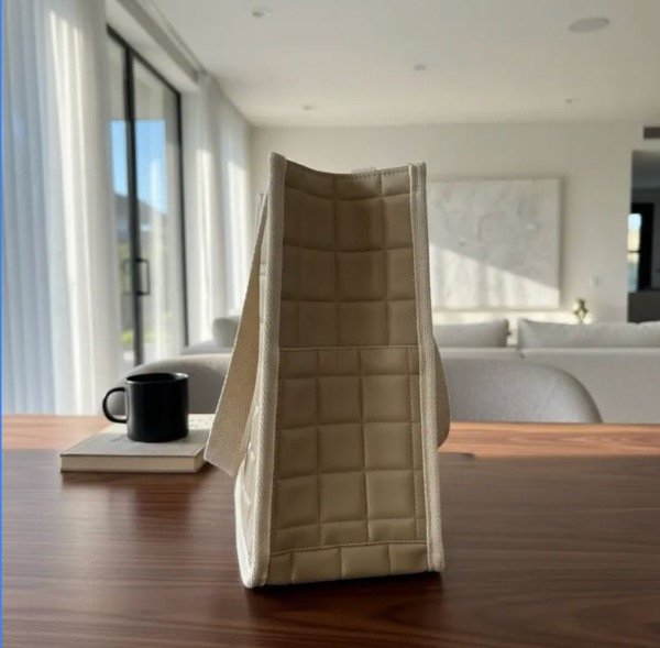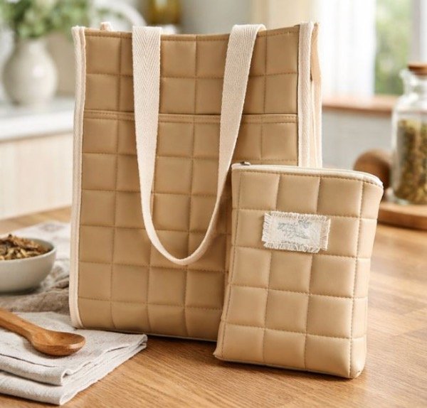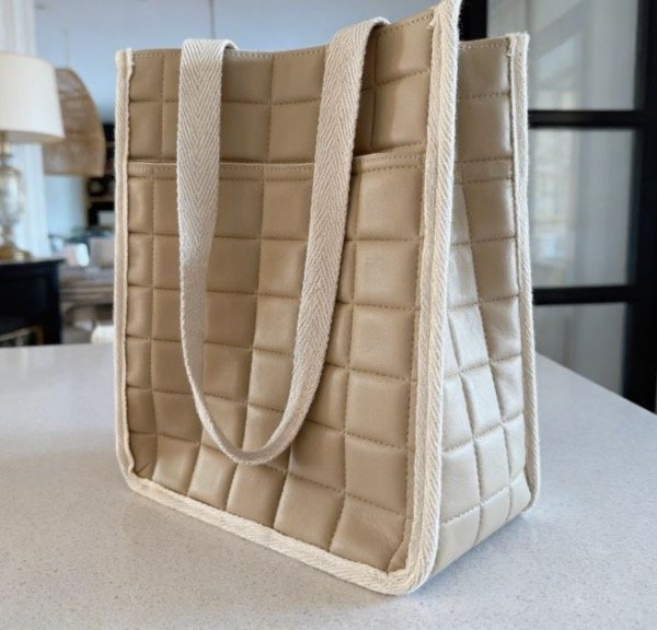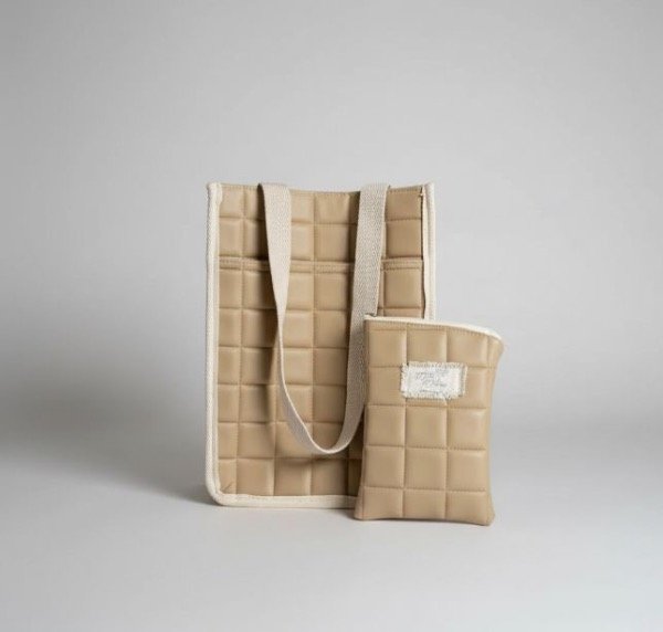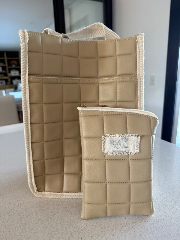 Matera en color Beige en cuero ecologico con cuadrados.