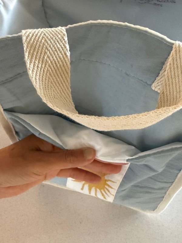 Con base color acqua y el sol pintado a mano con pincel ☀️, cada pieza es única y está realizada con dedicación artesanal.