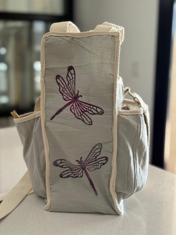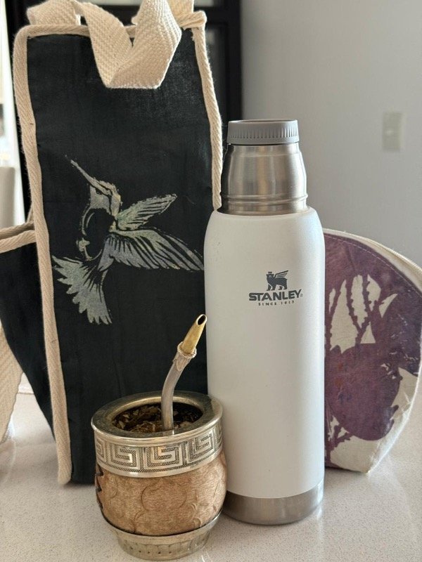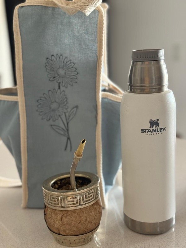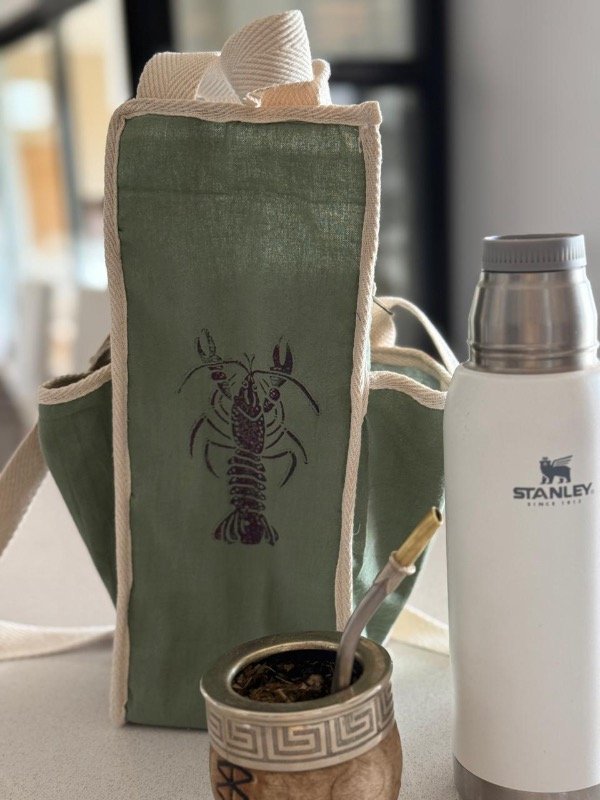 Forradas por dentro con material impermeable, con 2 bolsillos laterales para llevar el mate y la bolsita con la yerba, con estampas en sellos.